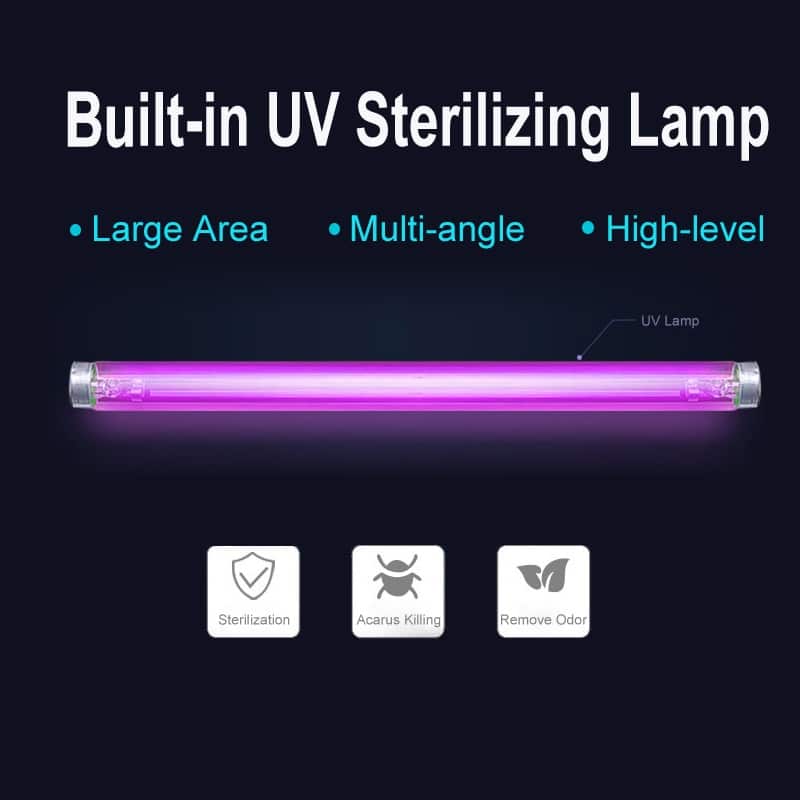 Sterilization principle: ultraviolet C-band light emitted by the UV lamp to destroy bacteria and DNA from bacteria and viruses for sterilization purposes.