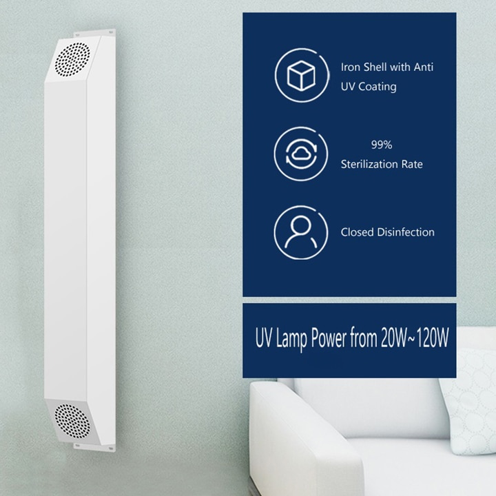 Air Sterilizer UV-C CDPL40-UVC. It can be mounted on the wall or ceiling. With CE certification for all types of business or public areas.