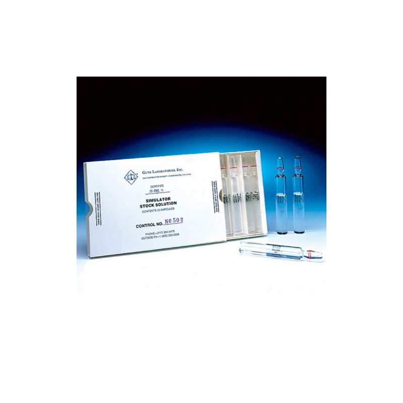 Guth stock solution ampoules are prepared by the end user in the field to obtain a working solution. They are used in the simulator for breathalyzer calibrations. Each pack contains 16 ampoules.