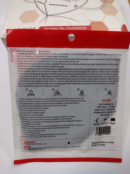 Place it on your face, adjusting it perfectly without it bothering you, with the nasal clip oriented towards your fingers. Let the elastic fastening straps hang freely. Arrange the mask on your face, so that the bottom is below your chin and the nasal clip is over your nose.