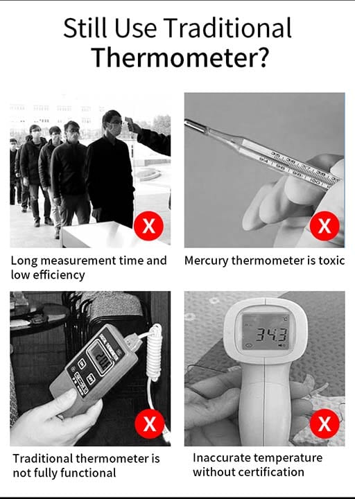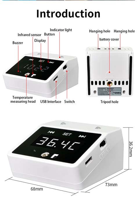 - Non-contact temperature scanner. No need to use your hands, thus avoiding cross infections.