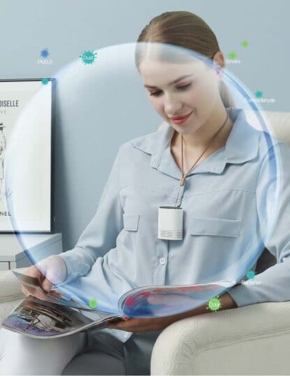 The purifier is delivered with a pendant to be able to carry it at all times. It will protect us in crowded public places like the subway, a clinic, a hospital, a bus, etc.