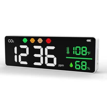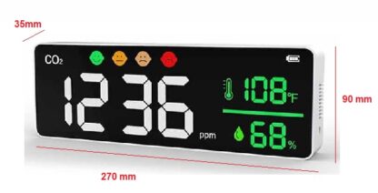This CO2 monitor has a powerful lithium battery of 2000mAh that allows you complete portability. It can also be placed in fixed locations on any flat surface or hung on the wall. It has a compact and reduced design of high visibility thanks to its 3.5″ LCD screen and an easy interpretation reading.