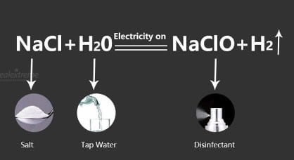 • Uses electricity to turn tap water plus a quantity of salt into a cleaner, deodorizer, disinfectant and multi-purpose disinfectant.