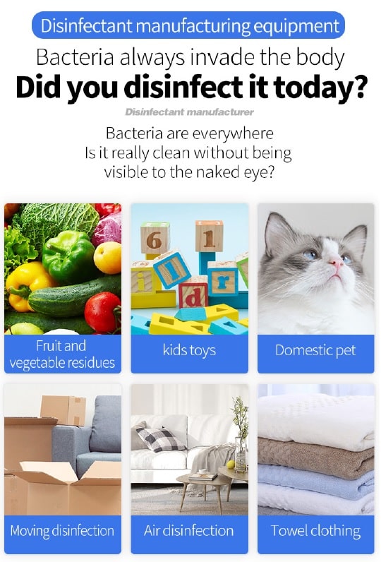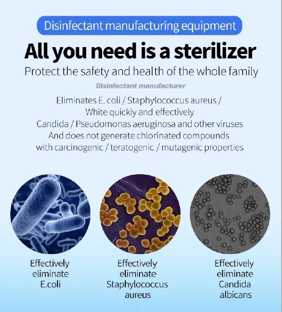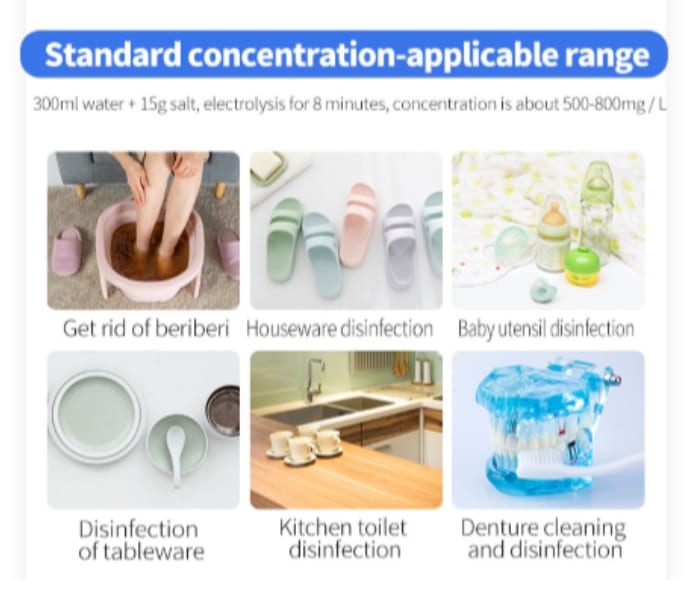 Make your own disinfectant at home, just add tap water and common salt to produce 84 disinfectants (also called sodium hypochlorite disinfectants), which can quickly and effectively kill E.coli, aerial Staphylococcus, Candida albicans, influenza virus, flu, etc.; with sterilization of up to 99.99% it can be used anywhere, family home, bedroom, school, kindergarten, hotel, hospital , office, restaurant, etc.