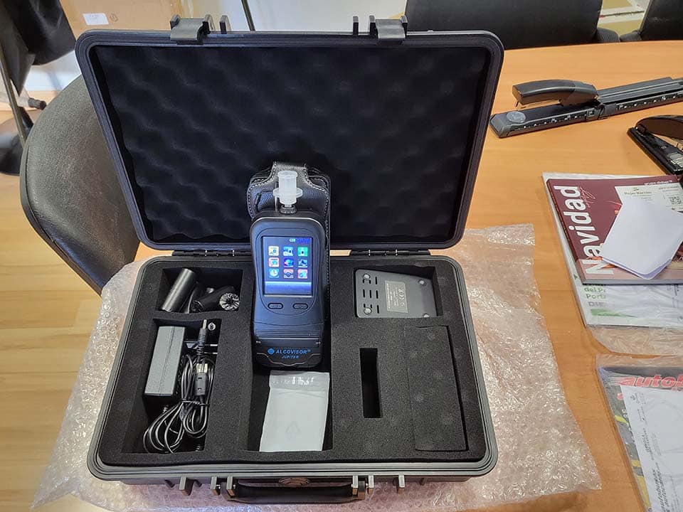 The Quantitative Ethylometer AdTecso-Jupiter AT-9900 with printer offers high reliability and is designed for police use. It incorporates the latest technological advances such as integrated printer head, LCD 3.2″ TFT color touch screen, high-capacity lithium battery, capacity to perform quantitative and qualitative tests with optional data collection with software activation. It has a wide range of European and international certifications with results that confirm its high precision, stability and reliability.