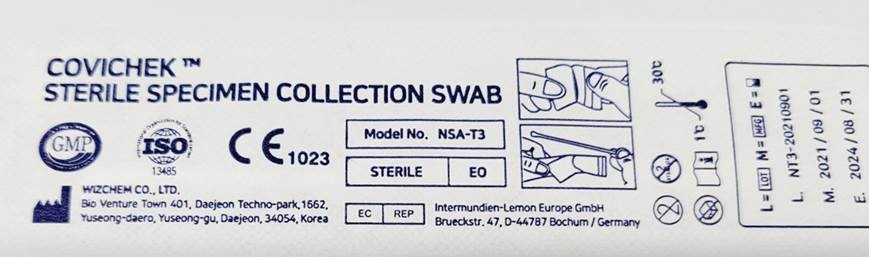 Hisopo nasal esteril CovichekTM NSA-T3 CE1023. Pack 20 unds
