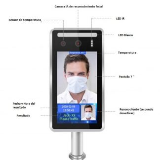 Panel de medición de temperatura, reconocimiento facial y de mascarilla CDPR100