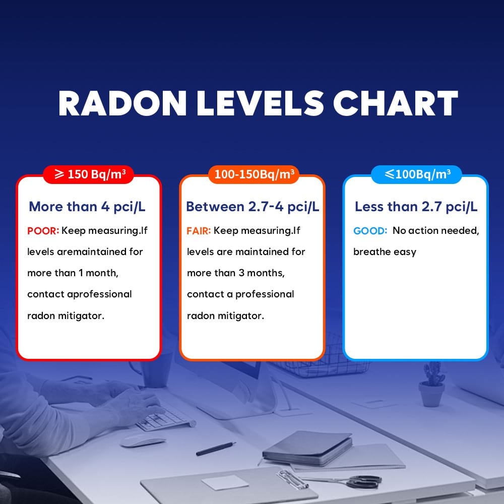 El último informe de la OMS sitúa en 100 Bq/m³ el valor límite a partir del que una exposición prolongada al radón puede tener un efecto peligroso para la salud. Por eso, es importante realizar mediciones frecuentes, especialmente en plantas bajas, sótanos y garajes con poca ventilación que es donde encontramos una mayor concentración.