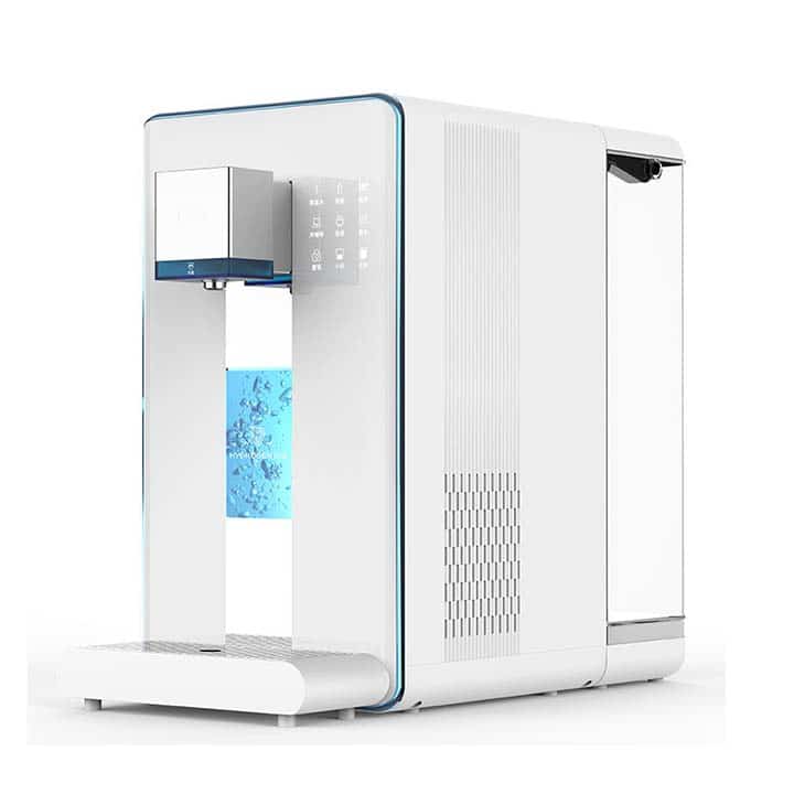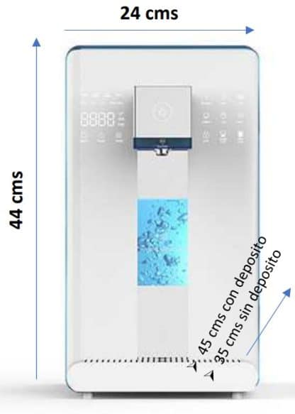 El dispensador de agua hidrogenada, filtrada y mineralizada, además de hidrogenar el agua, también la filtra mediante un sistema avanzado de osmosis inversa, mineralización de trazas naturales y la desinfecta mediante radiación UV, proporcionando agua purificada, mineralizada e hidrogenada de la máxima calidad eliminando todas las partículas contaminantes como metales pesados, micro-plásticos, clorinas, y microorganismos dañinos como virus y bacterias.