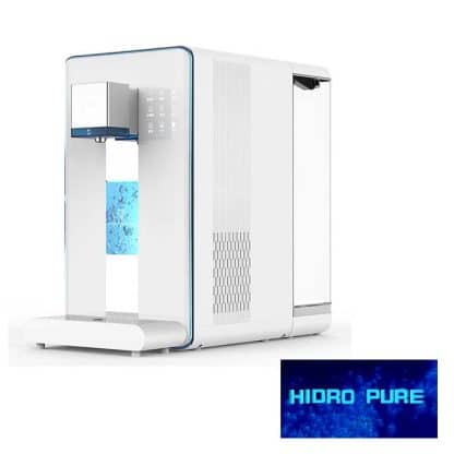 El dispensador de agua hidrogenada, filtrada y mineralizada Hidro-Pure, además de hidrogenar el agua, también la filtra mediante un sistema avanzado de osmosis inversa, mineralización de trazas naturales y la desinfecta mediante radiación UV, proporcionando agua purificada, mineralizada e hidrogenada de la máxima calidad eliminando todas las partículas contaminantes como metales pesados, micro-plásticos, clorinas, y microorganismos dañinos como virus y bacterias.