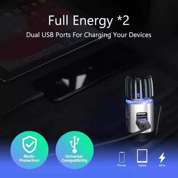 ioniza USB Dual-Port, Purificador de Aire Ionizador para Vehículos