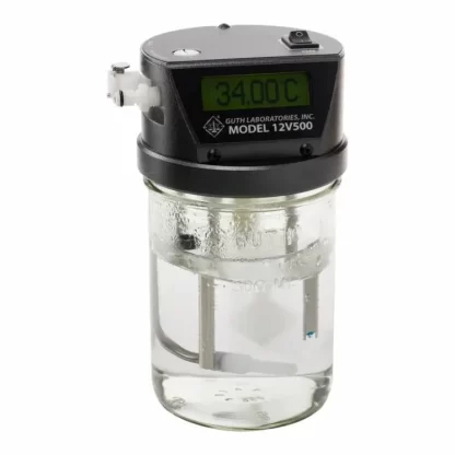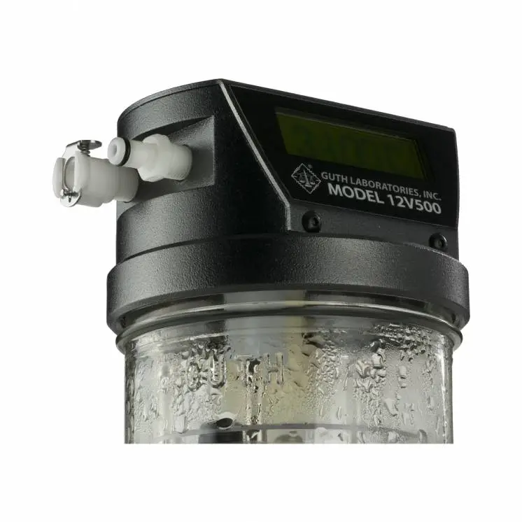 Kit simulador Guth Modelo 12V500 de aliento alcohólico por vapor húmedo con trazabilidad es un instrumento de agua-alcohol de última generación, con temperatura controlada electrónicamente, con el fin de proporcionar un estándar de calibración preciso para la prueba o calibración de analizadores de aliento alcohólico. El Modelo 12V500 es el primer simulador de este tipo en incorporar sondas de temperatura duales para controlar y monitorear de forma independiente la temperatura de la solución. La temperatura de la solución de agua-alcohol colocada en el simulador se mantiene a 34 ° C ± .05 ° C o mejor. Las vías de entrada y salida del puerto han sido diseñadas para ser una parte integral de la carcasa superior de aluminio calentado de una pieza, lo que permite un calentamiento uniforme y la reducción de la condensación. La nueva pantalla gráfica LCD tiene una resolución de temperatura de .01 ° C y, en caso de error, permite la retroalimentación al usuario en forma de mensajes en lugar de códigos. Al igual que con todos los productos Guth, el 12V500 ha sido diseñado utilizando componentes de la más alta calidad para brindar un funcionamiento confiable, preciso y sin problemas.