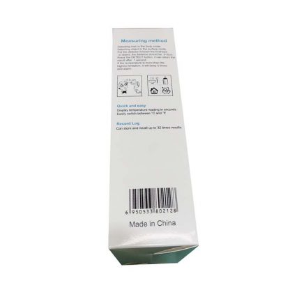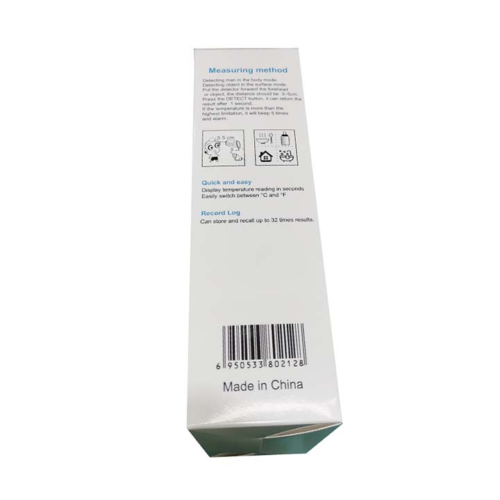 El producto es pequeño y portátil, adecuado para medir la temperatura del cuerpo humano.