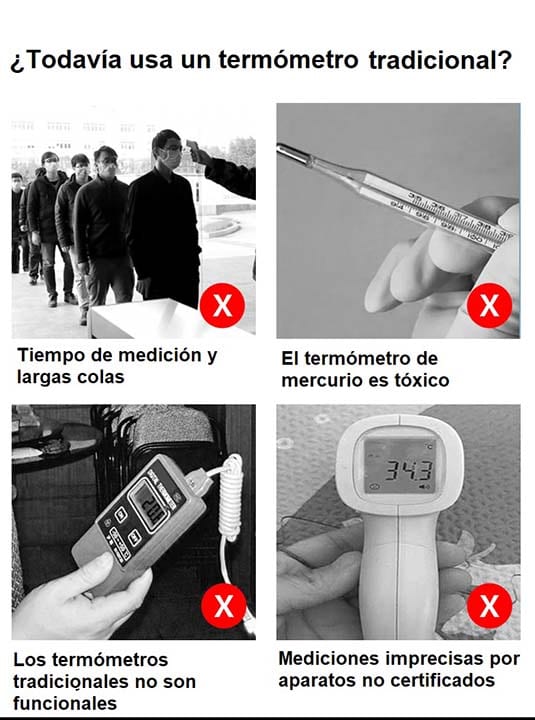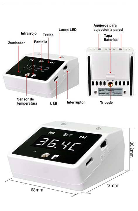 - Escáner de temperatura sin contacto, no es necesario el uso de las manos, evitando así infecciones cruzadas.